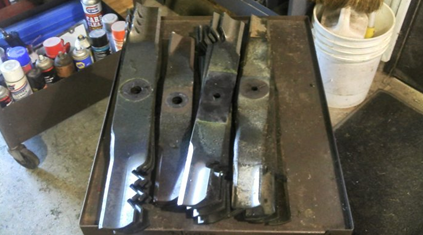Maintenance that can be achieved during the winter in the shop saves on charges paid for this service otherwise done by a contractor. Following this, we see the blades I'm changing on an old 1977 slit seeder. (see image 1-10)