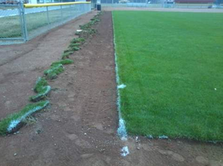 Skinned areas on athletic fields have to be maintained in order for players to have appropriate playing surfaces on either baseball or softball fields. When beginning this maintenance, one must measure and mark borders prior to cutting a new edge with a Turfco Edge-R-Rite along with flagging objects to avoid, such as sprinkler heads. (see image 1-1 on right)