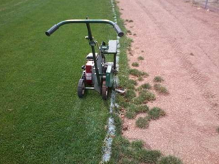 Skinned areas on athletic fields have to be maintained in order for players to have appropriate playing surfaces on either baseball or softball fields. When beginning this maintenance, one must measure and mark borders prior to cutting a new edge with a Turfco Edge-R-Rite along with flagging objects to avoid, such as sprinkler heads. (see image 1-1 on right)