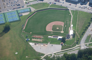 In the following photo, the baseball field that I maintained for many years is seen from an aerial view, along with the cement bins that were placed behind the field for bulk storage of MVP, topsoil, gravel, and sand. (see image 1-8 on right)